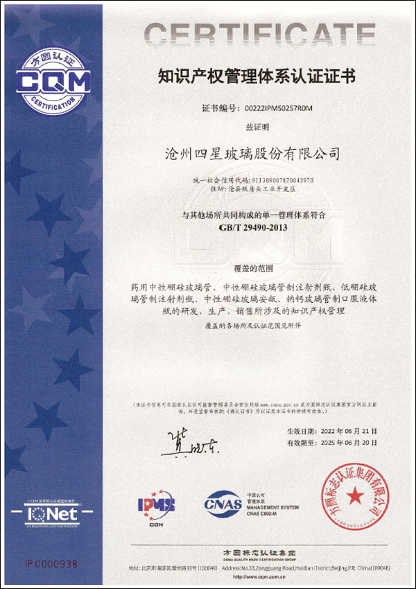 知識產權管理體系認證證書